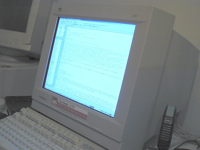 I've got the Viewsonic PerfectFlat A75f monitor attached to it. It's awesome, it's got a naturally flat 17" screen on it, with no distortion at the edges. |