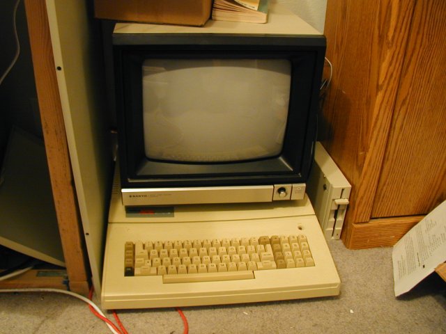 Andrea donated this 1982 computer, the Franklin Ace 1000 (it was going in the trash). Apparantly, it's an Apple IIe clone (the company went out of business over a lawsuit with Apple) The display that I got with it is pretty fuzzy and nearing the end of the road, and I don't have any software for it.