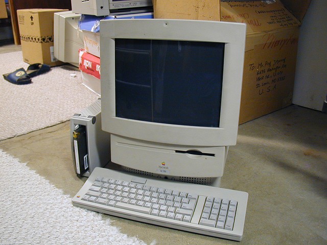 This is an LC550 that I picked up from school before it found its way to the dumpster. The LC550s were only sold through educational channels, and right now it serves as my print server for my Apple Personal LaserWriter 320. I usually have a SCSI Syquest 200MB drive attached to it, and I may build an external SCSI CD-ROM at some point for it too.
