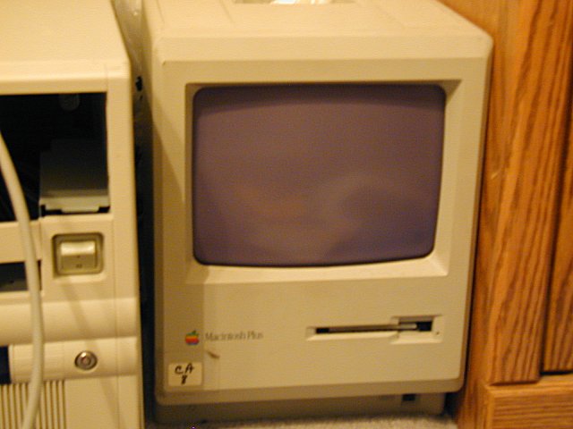 This Mac Plus that I salvaged seems to work fine except for a blown-out monitor. It doesn't have output for an external monitor, so I'm not quite sure what I'm going to do with this one... I don't even have the weird RJ-11 keyboard that it uses.