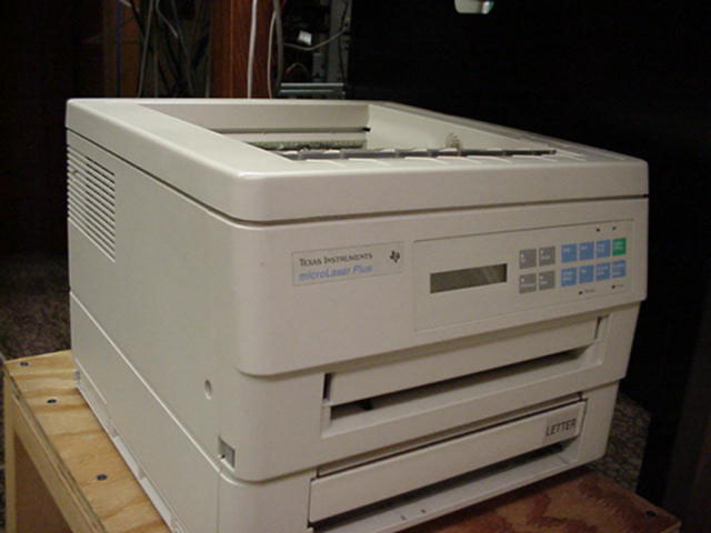 Now, this baby we purchased back in 1993, and it's still running strong. It's a TI Microlaser Plus, and prints 9ppm. I love it.