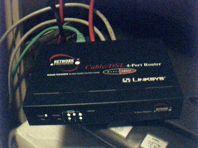 To replace the hub to use in my room, I bought this Linksys 4-port 10/100 switch/DSL-cable router for $49 at CompUSA. It has the usual Linksys easy-to-use interface and rock solid reliability.