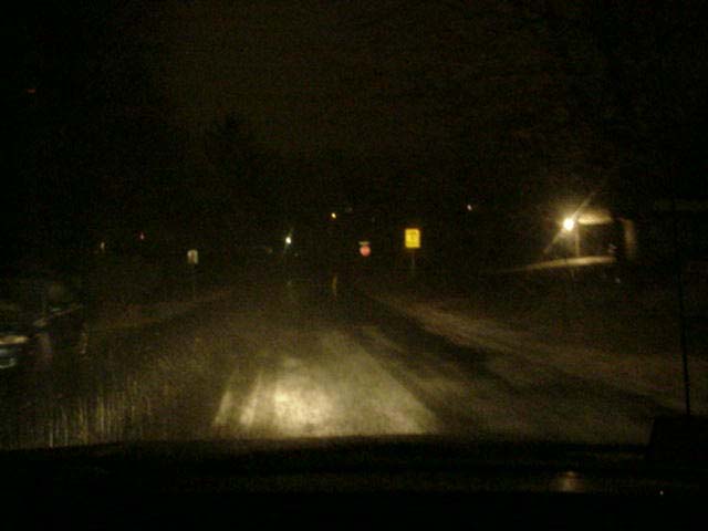 Picture - I head for school. It's snowing pretty hard, the roads are starting to stick snow.
