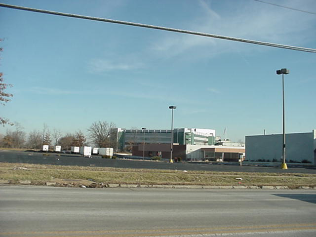 Picture - I turn right on Dielman road. Here's an abandoned shopping centre. I think it's being turned into a warehouse. The green building in the back is a Government Records centre.