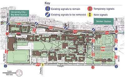 They're shutting down Millbrook Blvd. between Big Bend and Skinker for 2 years, starting May 2003. It'll be all open to install Metrolink, which is going under it. There will be one lane open, however, Eastbound from Big Bend and Westbound from Skinker, meeting at Throop Drive, just for Wash U. Shepley Drive is also being connected to Forsyth now, with a new traffic light there. Some temporary traffic lights will be going up too for the 2 years of construction, at Snow Way and Big Bend, and Hoyt and Forsyth. What I'm wondering is, what are all those people who use Millbrook every day going to do?