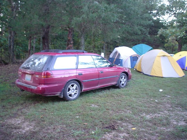 Picture - The morning of the final day of the Fall Getaway conference. I parked among the tents and slept in my car, where it was warmer and more quiet.