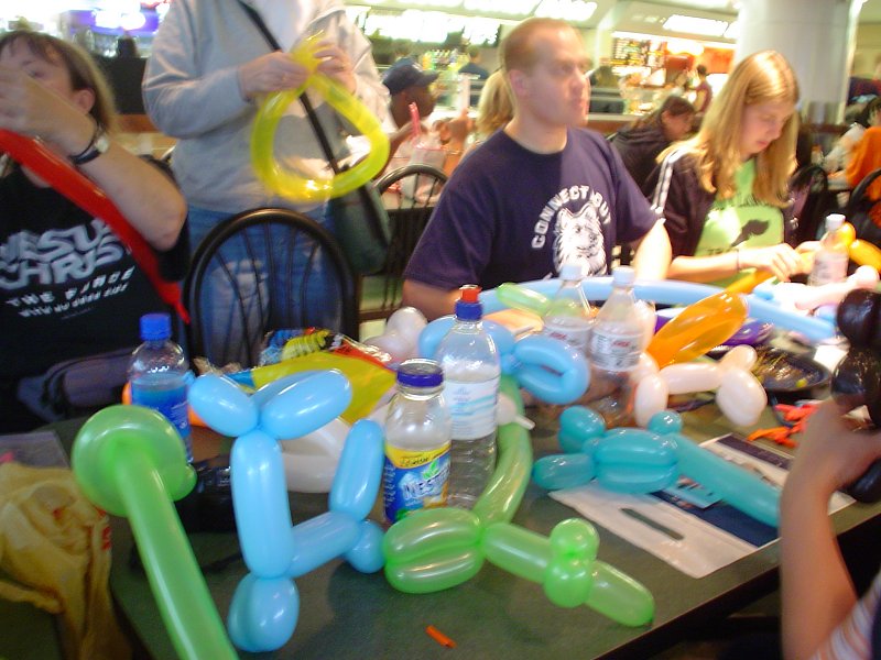Picture - Learning to work with balloons in the Chicago O'Hare airport. I left today on a trip to Warsaw and Krakow, Poland, with my church, Parkway Baptist Church, to perform concerts, conduct a Day Camp for children in their community, and conduct English discussion groups for young people to learn English from a native speaker. The flight from St. Louis to Chicago was in an ME145, which is an interesting little jet that has only 3 seats across. You know you're in a small plane when they are reassigning people seats in order to balance the weight of the craft. The flight from Chicago to Warsaw was direct, and I managed to sleep for 5 hours straight. That's impressive, I don't know how often I do 5 hours straight in my own bed at home.