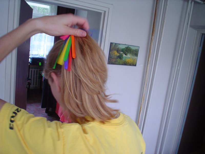Picture - Kristen figured out how to make the balloons, before inflated, into hair decoration.