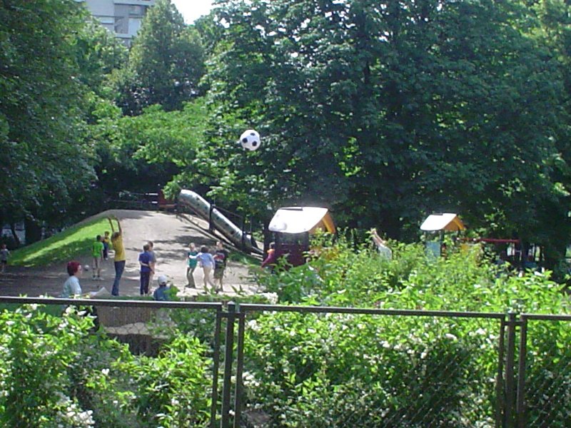 Picture - Playing with the big soccer ball in the park.