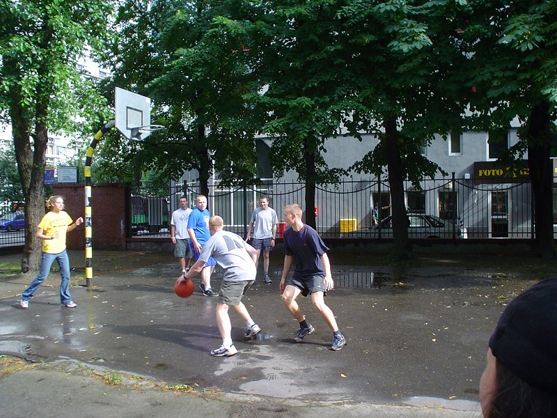 Picture - Playing basketball - Polish vs. Americans. Americans won.