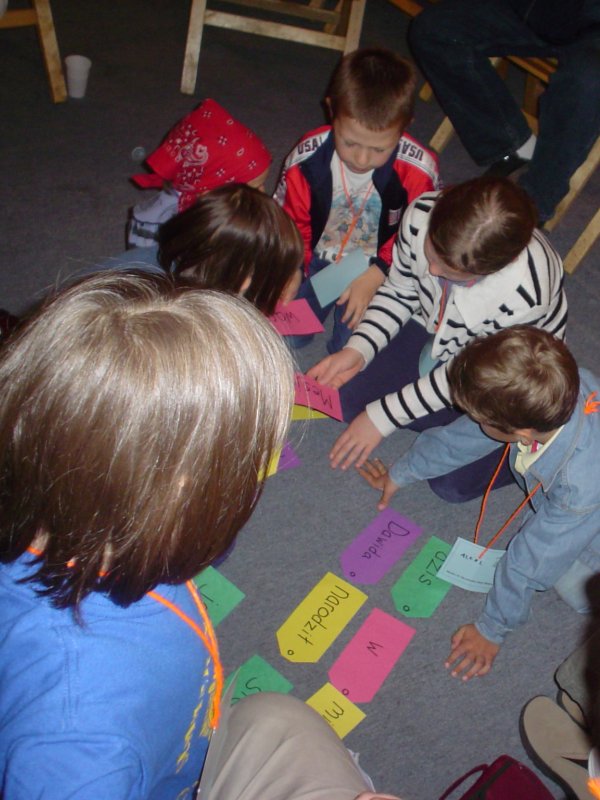 Picture - The kids in the Day Camp put the words of the memory verse in order.