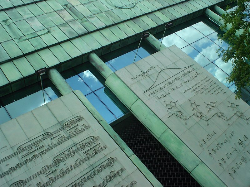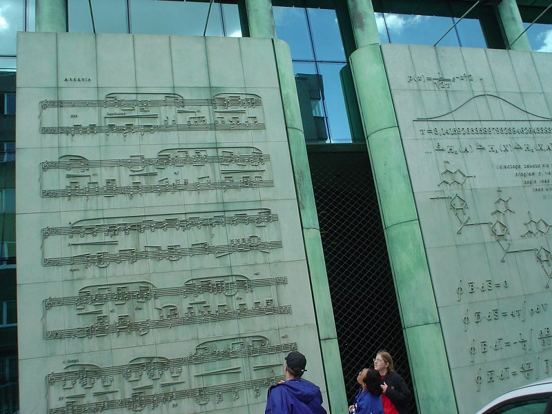 Picture - Each of the panels on the side of the library represents one language.