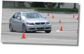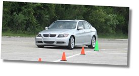 Well enough of being a couch potato - the highlight of the day is to take the new 330i out onto an autocross course and thrash it around. Now the 18-inch tires on the 330i with the sport package are good! They were really sticky - they pick up pebbles on the parking lot like the Falken Azenis do. I wonder if they do rank up there with those race-proven Azenis in terms of grip - they only lasted about 50 miles on the track. You can tell those tires were up to the beatings we were putting them through - we were at the end of the weekend and the sidewalls still looked pretty healthy - very little sidewall flex. They really do provide tons of grip, given that we've loaded 3450 pounds on them plus 4 people.