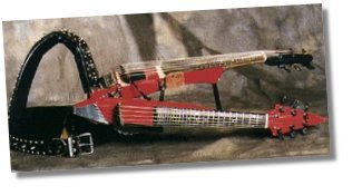 All these strings start to remind me more of those lutes that people played in the medieval and renaissance period. This double-neck violin that Wood has re-emphasizes this. If you've never looked up the harp-guitar, now is a good chance.