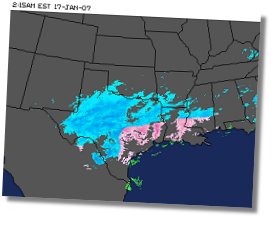 I'm sitting here wondering why I didn't capture the amazing radar images I've been watching all day of the huge snow system stalled over Texas, and at times showing New Orleans receiving snow. Apparently, I haven't missed that opportunity completely yet. As of 1:15 CST you can still observe almost the entire state of Texas being snowed/iced on.