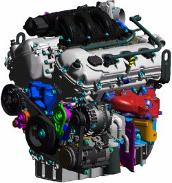 So what's Ford going to do? It would surprise me if they can pull off a GM and adapt a V8 truck engine to transverse mount. The solution - the TwinForce Cyclone. While GM has had a history of using superchargers to boost power on a small engine, Ford's had a bit of success with turbochargers, usually with Mazda (or more recently, Volvo) expert help. (The turbo Mustang, Probe, and Focus come to mind.) Ford's going to put two turbos on the Cyclone, producing 430 hp and 400 lb-ft of torque. Welcome back Taurus SHO.