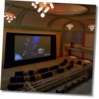 I went to the Moolah Theatre for the first time tonight. It is known in town for being the hip theatre with leather loveseat and couch seating, and being generally a very pretty building inside and out. All that is true, though we sat in the balcony and found it to be really nice too, and with the screen angled the way it is you probably get the best view and sound from there.