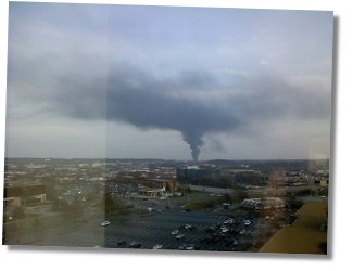 Picture - A view from 4 miles away of the major fire at the galvanizing plant