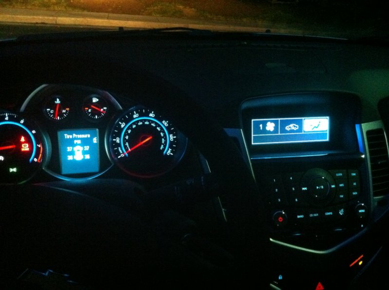 Good For: Experiencing all sorts of luxuries in an inexpensive car. I've always loved that GM is willing to put simple, useful electronics in even their inexpensive cars, and I like the next step they have taken with the Cruze. The one-line display in the gauges has been replaced with a big screen in the middle, much like what you see in the Escalade, but even better: the tire pressure monitor has a cool display, and when you activate cruise control it actually gives you full feedback - "Cruise set to 60 mph". This is feature I have always wanted in a car! Speaking of feedback, there is a large screen at the top of the center stack that not only gives you the date, time, temperature, and audio information, but it displays climate control changes too. There are numerous other classy touches, like the VW-style folding key fob.