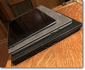 Overall reaction - Thumb up: The Surface Pro is a Windows PC in the most minimalist package. It has only one USB port, but plug in a docking station and you are quickly up and running with as many big monitors and input devices as you need to be very productive at your desk all day. If you need to move, taking everything you are working on with you is a light burden. Even the power adapter is more of a tablet-sized plug compared to the bricks that come with laptops, and it even features an extra USB port for power to charge your phone or tablet. That power port comes in handy because in the end, the Surface Pro cannot replace my tablet, and at the same time ceases to be a laptop. Windows still has too many functions that don't work well on a tablet, so you feel like you are working on a laptop stuck inside a tablet form factor. When I take a trip I travel with both the iPad and Yoga because they fulfill two different use cases. The iPad is perfect for hand held use and quickly accessing functions, since there is essentially no wait to come online from standby. The Yoga's touch screen and hinge allow for mobile use in small spaces, but does not compromise any laptop functions. I'm not looking for a third device to carry, but at least when I do pack it, it's a reasonably small one.