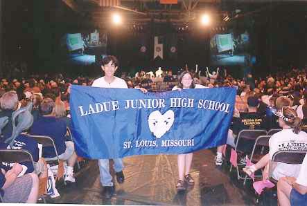 ![]() I represented the Ladue team in holding our team banner with Karin during the Opening Ceremonies of the National Science Olympiad competition.