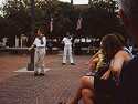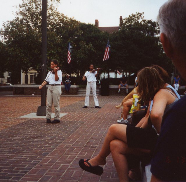 Ashish introduces the next piece as we play at Market Square in Old Alexandria.