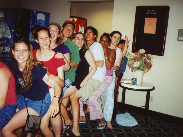 We're acting goofy in the hotel lobby and decided to "make it fit".