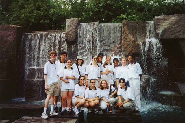 We line up in arc formation at an amphitheatre in the Arlington Cemetary.