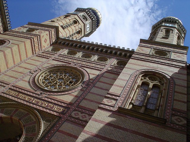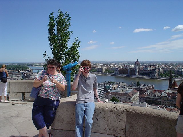 A model is made of the Fisherman's Bastion with braille descriptions on it for blind visitors. Trinity Square Matthias Church at the Fisherman's Bastion. Ceramic tiles are typical of architecture here. Streets around the Fisherman's Bastion The Fisherman's Bastion, with the ceramic tiles of the Matthias Church visible. The view from the Fisherman's Bastion. The Parliament Building from the Fisherman's Bastion. Mr. P is trying to get pictures of Budapest from the Fisherman's Bastion. Fisherman's Bastion, with a wonderful view of the Matthias Church. More picture-taking from Fisherman's Bastion, except Kevin's got his camera pointing the wrong way. First day of the trip and we're already leaving Mrs. Yokoyama behind. The yellow building close to Fisherman's Bastion is a thermal bath house. From this view, you can also see the island that sits on the Danube River. Fisherman's Bastion. Beth and I at... all together now... Fisherman's Bastion. Budapest synagogue, Europe's biggest synagogue