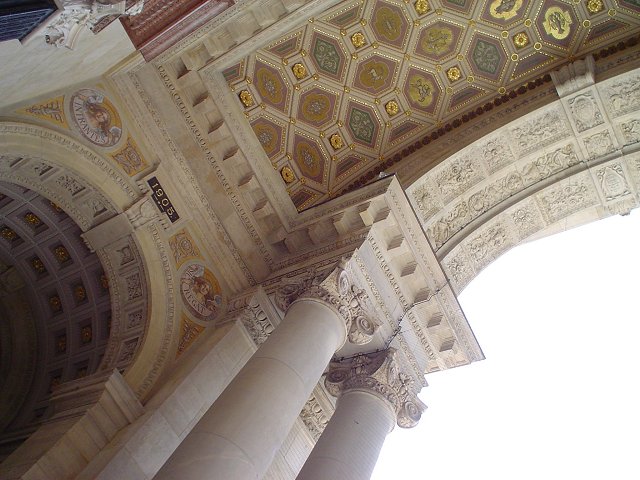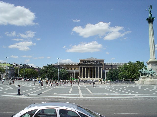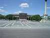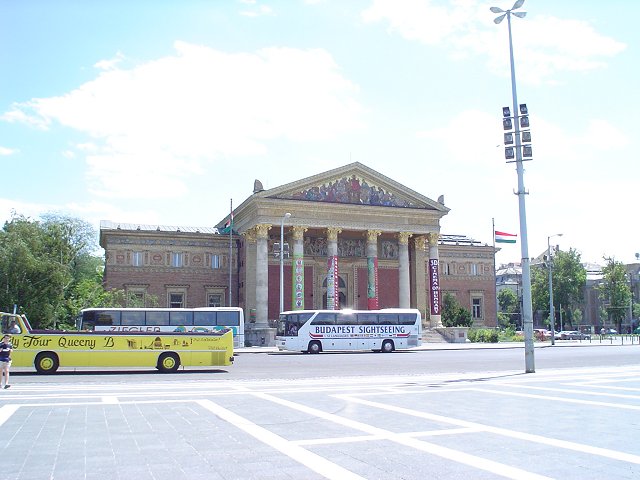 Inside the Jewish Museum next to the synagogue. The athletic complex in Budapest. The Museum of Fine Arts sits on one side of Hero's Square. A building near Hero's Square that remains from the Exposition. In the winter the pond turns into an ice skating rink. We observe the ceremony with the colour guards in Hero's Square. From this side, you can see the Art Gallery.