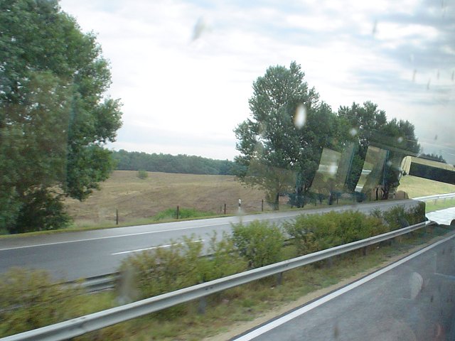 Sound Teardown The streets in Budapest are pretty narrow, and people park on the sidewalk and what-not. A SMART car in Budapest The chaperones on the trip were awesome - they ended up doing more than half of the sound equipment schlepping since everyone had their instruments to take care of. As we drive from Budapest to Vienna, we enjoy the Hungarian countryside, which is filled with fields of sunflowers.