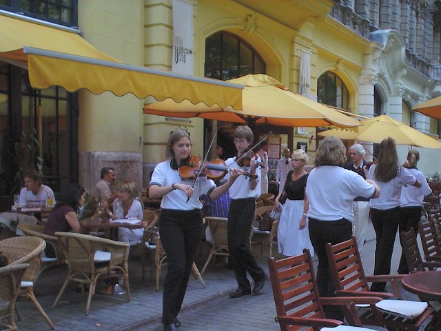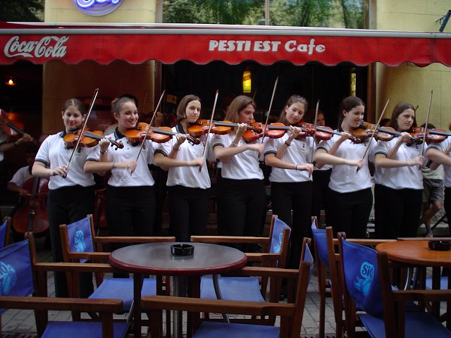 The 2003 Ladue Strolling Strings European Tour started out in Hungary. The thumbnails direct you to the larger pictures from the first part of the trip. Hungary, 2003We all gather at the St. Louis International Airport, ready to go. Our journey over to Europe via United Airlines first takes us up to Chicago, then Frankfurt, Germany, and finally to Budapest, Hungary on Lufthansa.