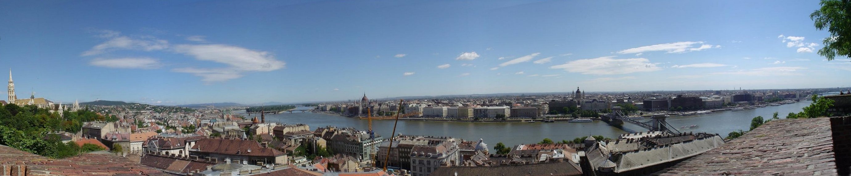A view over Lake Michigan from the Boeing 777 we took. We arrive in Budapest at 9:20, so we all tried to sleep on the plane so we could be rested for our first day in Budapest! The sun casted a nice soft red glow through the window of the plane. The Frankfurt airport is pretty nice. Loading the plane to Budapest! A view of Frankfurt from the plane. Look, we get Recaro seats on the airplane. Budapest skyline panorama, constructed from 7 pictures: 1 2 3 4 5 6 7